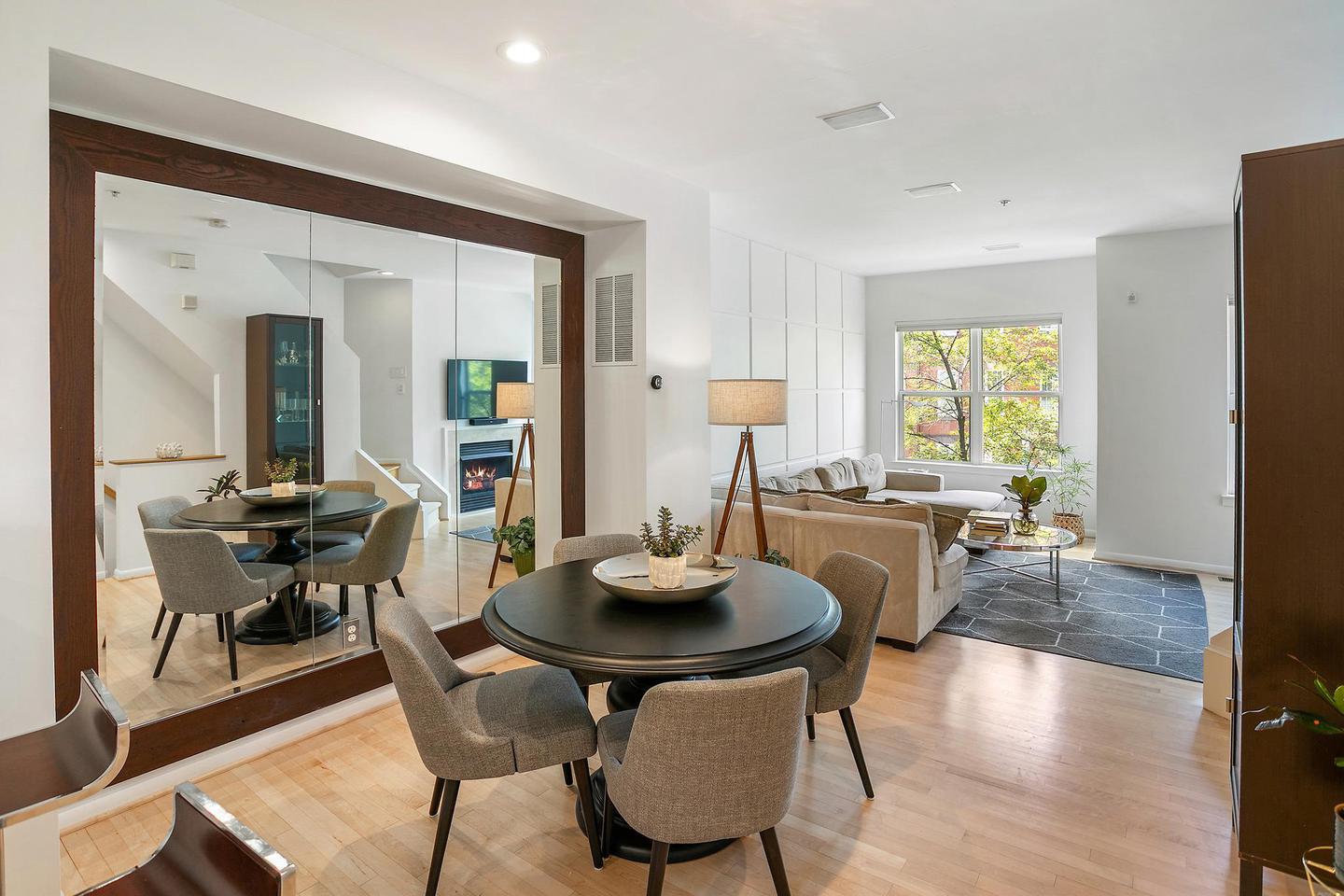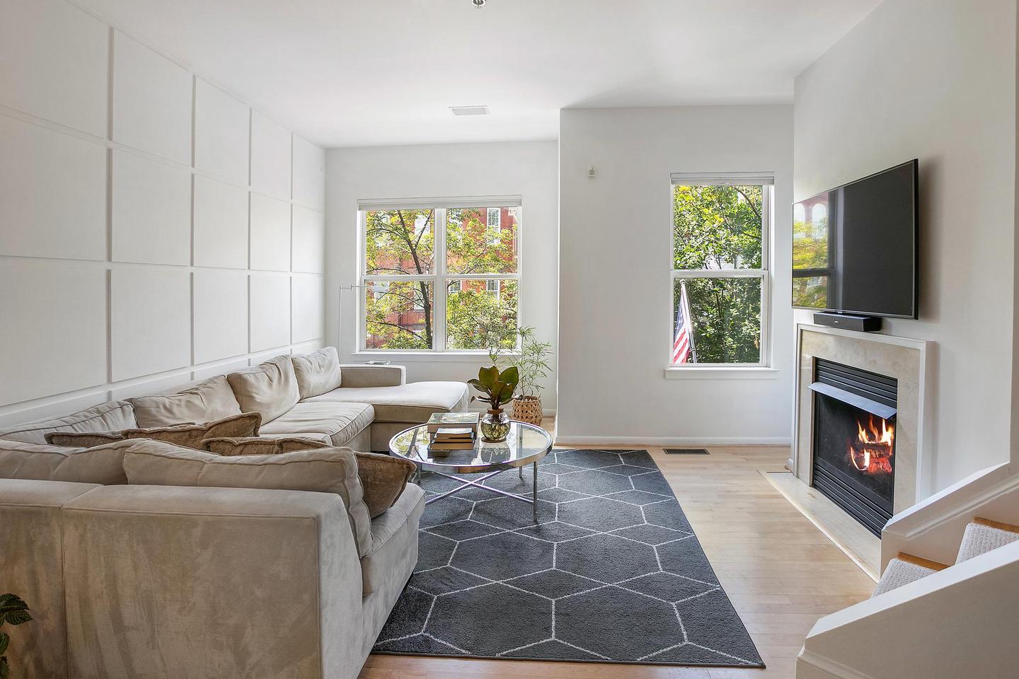 This immaculate townhouse, located just two blocks from the U Street Metro in the heart of the U Street/14th Street corridor, features a rare private roof terrace with direct views of the Washington Monument. Designed for both elegant entertaining and comfortable everyday living, the home offers 3 bedrooms, 3.5 bathrooms, garage parking, and hardwood floors throughout. The stylish main level showcases an upgraded eat-in kitchen with granite countertops, premium stainless steel appliances, recessed lighting, and a deck off of the kitchen, along with a bright living area highlighted by a custom feature wall, a gas fireplace with crema marble surround, a spacious dining area and also a powder room. Upstairs, the large owner’s suite includes wood floors, wood plantation shutters, and ample closet space, while an additional bedroom, third full bathroom, new washer/dryer, and access to the spectacular roof deck complete the level. Guest parking available in courtyard (with owner's pass). Just blocks from Whole Foods, Trader Joe’s, and many of DC’s best restaurants and cafés, this home earns a near-perfect 99 walk score.